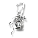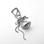 A stainless steel pocket watch keychain with a dreamy astral theme, featuring star charms and ball chains that resemble constellations. A celestial blend of whimsy and vintage charm.